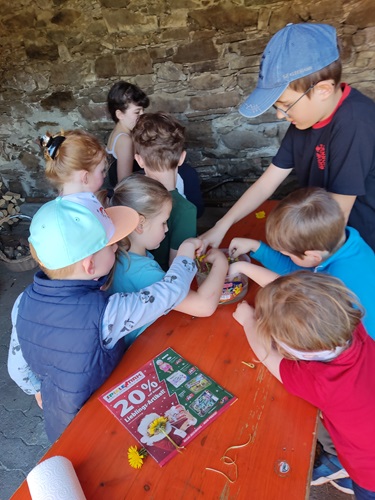 In der April-Gruppenstunde der Waldindianer stand das Forschen und Experimentieren ganz oben auf der Tagesliste. So lies ein Glas Wasser die Fische auf einem Blatt Papier in die andere Richtung schwimmen, Pfeffer auf dem Wasser floh vor einem Finger im Wasser, ein Papierschiff wurde unter Wasser nicht nass, ein Gummihandschuh blies sich mit Hilfe von Backpulver wie von Geisteshand auf, und noch einiges mehr! Zum Abschluss bastelten die Kinder noch einen Wetterpropheten aus einem Kieferzapfen.